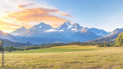 © Narongsag, Fototapeta premium Majestic Sunrise Mountain Panorama Golden Hour Landscape Photography