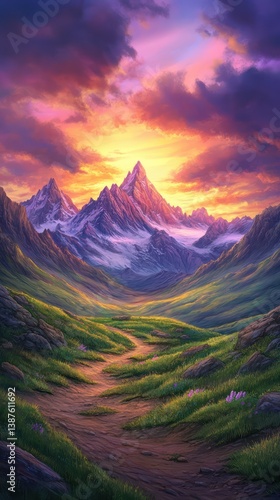 © Rahmat, Fototapeta premium Majestic Sunrise Mountain Path