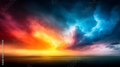 © Bos Amico, Naklejka premium Majestic sunrise or sunset sky filled with whimsical cloud formations and vibrant hues of orange pink and purple The dramatic lighting creates an ethereal atmospheric and cinematic landscape