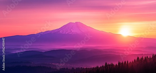 © alisya, Naklejka premium Majestic sunrise over a snow-capped mountain range.