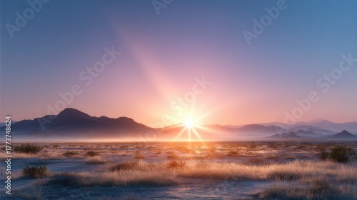 © Olena, Fototapeta premium Majestic sunrise paints desert with glowing dunes and vast skies