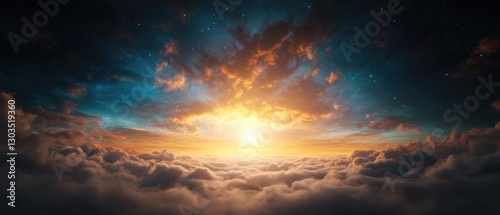 Fototapeta premium ** Majestic Sunset Above Clouds with Fiery Sky and Distant Stars