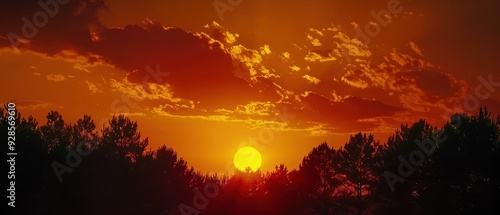 Obraz premium Majestic Sunset: Fiery Red and Orange Hues Over Silhouetted Trees in High-...