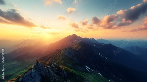 Fototapeta premium Majestic Sunset Mountain Panorama: A Breathtaking View