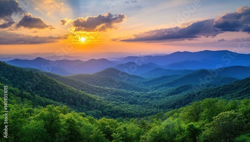 © bangsol, Fototapeta premium Majestic Sunset Over Blue Ridge Mountains