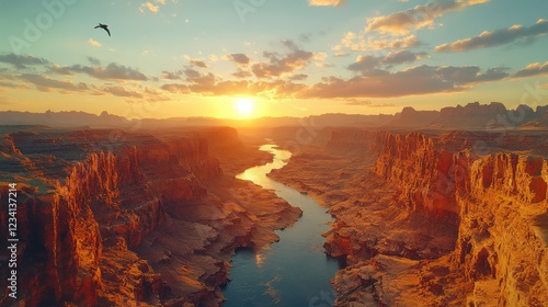 Fototapeta premium Majestic Sunset over Canyon River Landscape