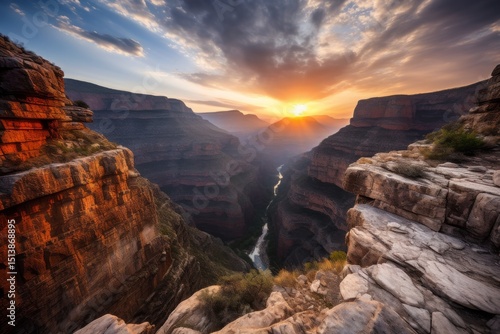 © PNG House, Fototapeta premium Majestic sunset over canyon river valley dramatic landscape