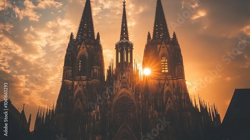 Fototapeta premium Majestic Sunset Over Gothic Cathedral Spires
