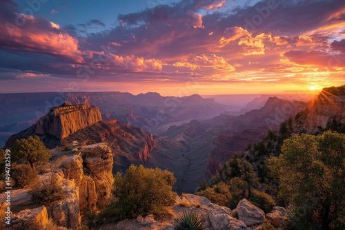 Fototapeta premium Majestic sunset over Grand Canyon showcasing vibrant colors and rugged...