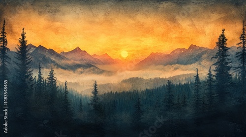 © satisfied, Obraz premium Majestic Sunset Over Misty Mountains