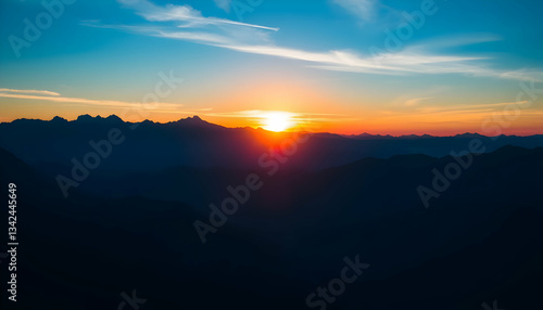 © Karmiyem, Fototapeta premium Majestic Sunset Over Mountain Range Scenic View Nature Photography