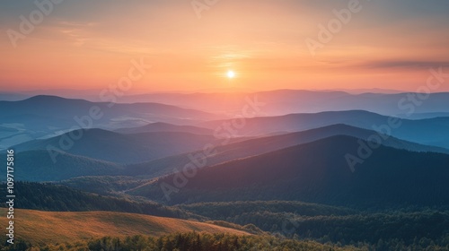 Obraz premium Majestic Sunset Over Rolling Mountain Ranges