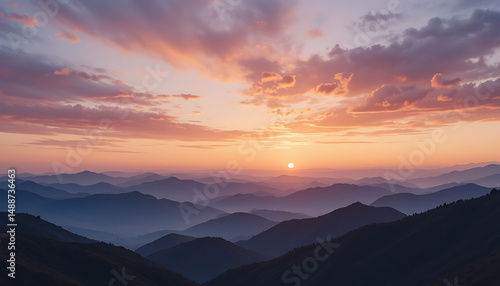Fototapeta premium Majestic sunset over rolling mountain ranges