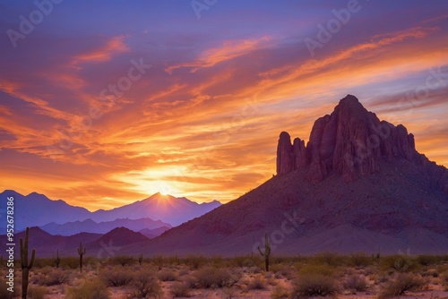 © Introvertia, Naklejka premium Majestic sunset over rugged mountain range in desert