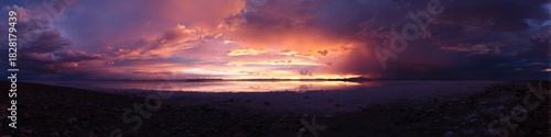 Fototapeta premium Majestic sunset over salt flats with dramatic clouds and vibrant colors