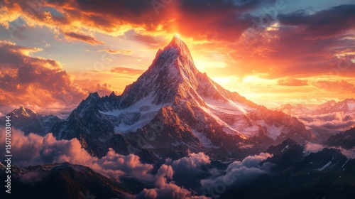 © dekor, Fototapeta premium Majestic Sunset over Snow-Capped Peaks: A Breathtaking Mountain Panorama