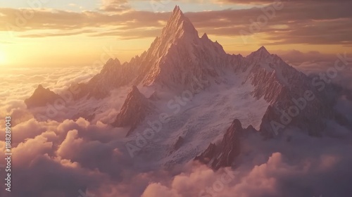 Naklejka premium Majestic Sunset over Snowy Mountain Peaks