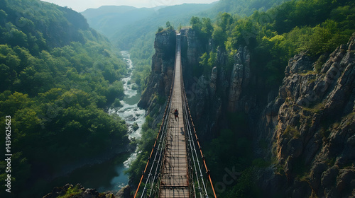 © smevg, Fototapeta premium Majestic Suspension Bridge over a River Canyon