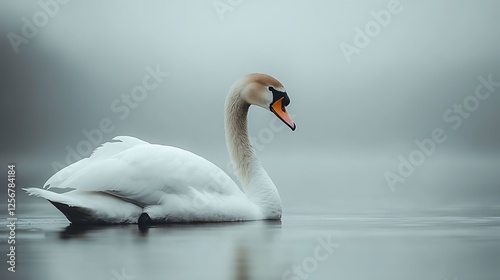 Obraz premium Majestic Swan in Misty Morning Light on Water
