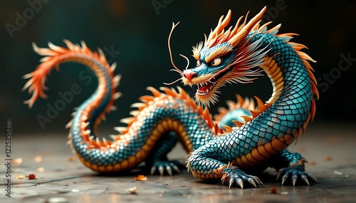 © Muhammad, Fototapeta premium Majestic Teal and Orange Dragon 3d Render Art Print