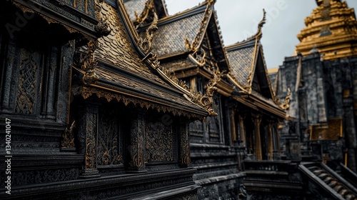 Naklejka premium Majestic temple architecture thailand photographic detail cultural landscape...