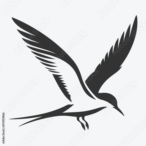 © Jannatul, Obraz premium Majestic Tern Silhouette Soaring Across the Skywhite background