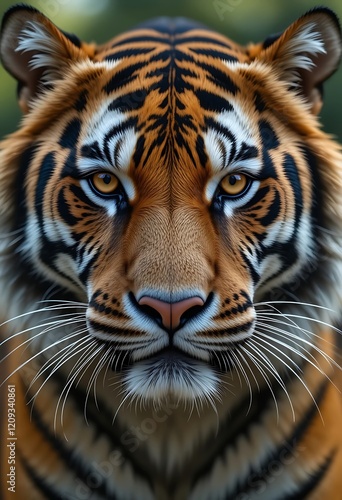 Fototapeta premium Majestic Tiger Closeup Intense Gaze Orange Black Stripes Fur