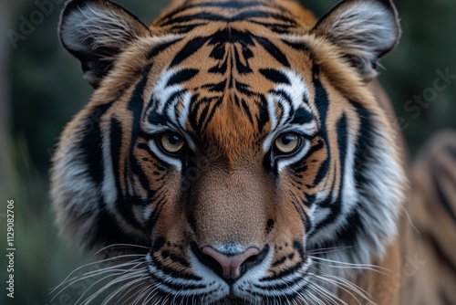 Fototapeta premium Majestic tiger gazes directly with powerful presence in a natural habitat...