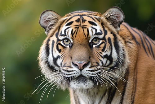 © Ivan, Fototapeta premium Majestic tiger gazes intently, showcasing striking stripes and f
