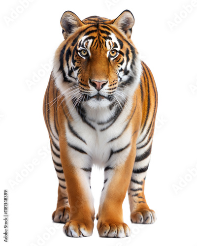 © imagemir, Fototapeta premium Majestic tiger gazing directly with intense eyes on a transparent background