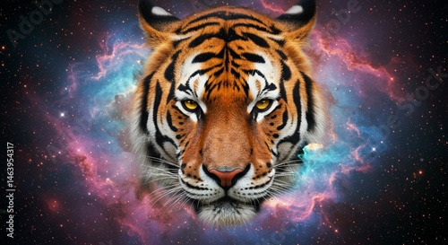 Fototapeta premium Majestic Tiger Head in Cosmic Nebula Mystical Space Wildlife Portrait