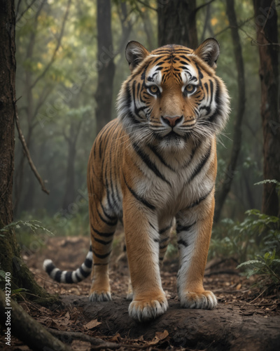 © DavidMohn, Obraz premium Majestic Tiger in Misty Forest