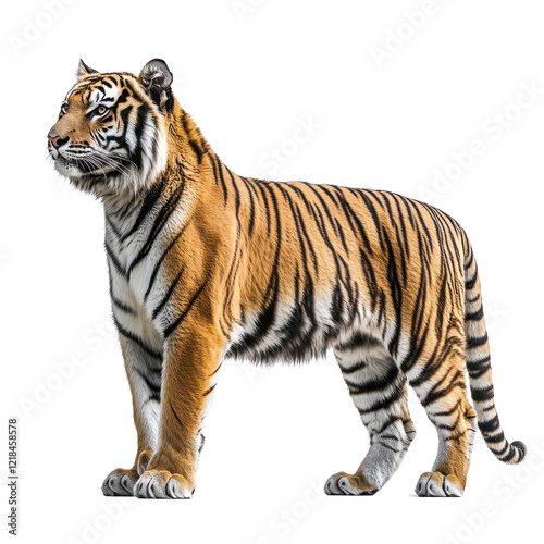 © Anha, Naklejka premium Majestic Tiger on Black Background Powerful Wildcat Profile View