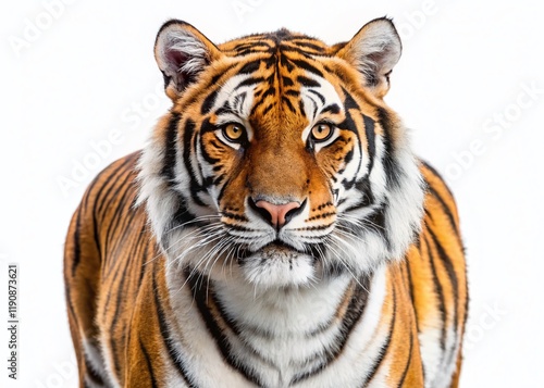Naklejka premium Majestic Tiger on White: Stunning Candid Wildlife Photo