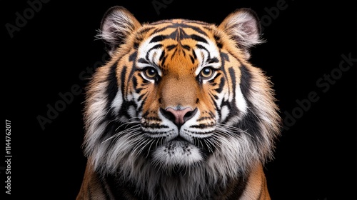 © kinara art design, Fototapeta premium Majestic tiger portrait against black background. (4)