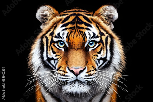 © JUMROTUL, Fototapeta premium Majestic tiger portrait against black background