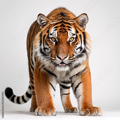 Naklejka premium Majestic Tiger Portrait with Piercing Eyes, Striking Stripes, Detailed...