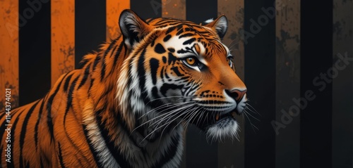 © Kiryakova Anna, Fototapeta premium Majestic tiger portrait with vibrant orange and black stripes.