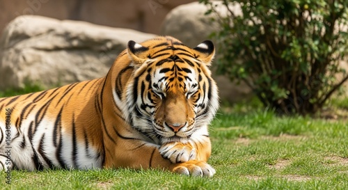 Fototapeta premium Majestic Tiger Resting in Green Grass