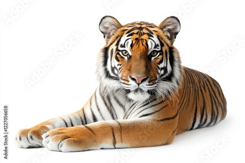 © Zahra, Naklejka premium Majestic tiger resting on white background.