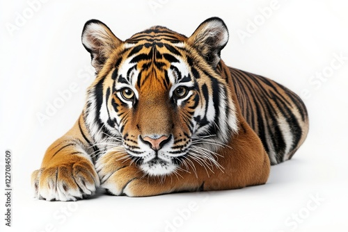 © Zahra, Obraz premium Majestic tiger resting on white background