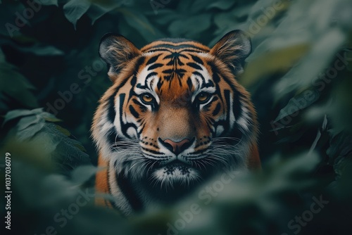 Fototapeta premium Majestic Tiger Roaming the Dense Jungle Habitat