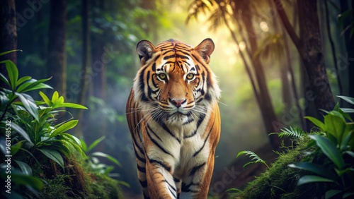 Obraz premium Majestic tiger roaming through dense forest, wildlife, predator, jungle, feline, nature