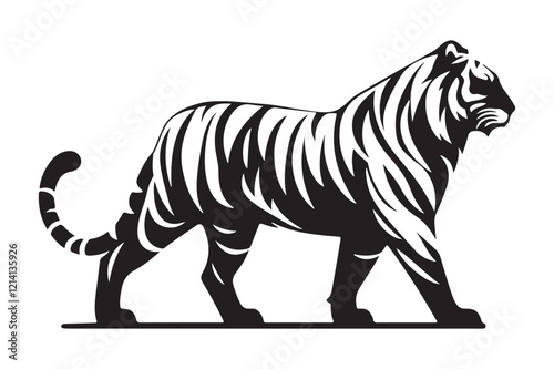 © mohammedShorab, Naklejka premium Majestic Tiger Silhouette at Sunset – Wildlife Stock Illustration