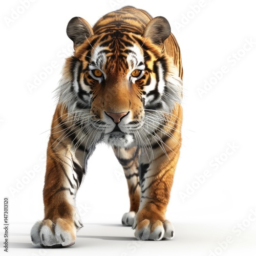 © NikahGeh, Fototapeta premium Majestic tiger strides forward, showcasing its powerful presence.