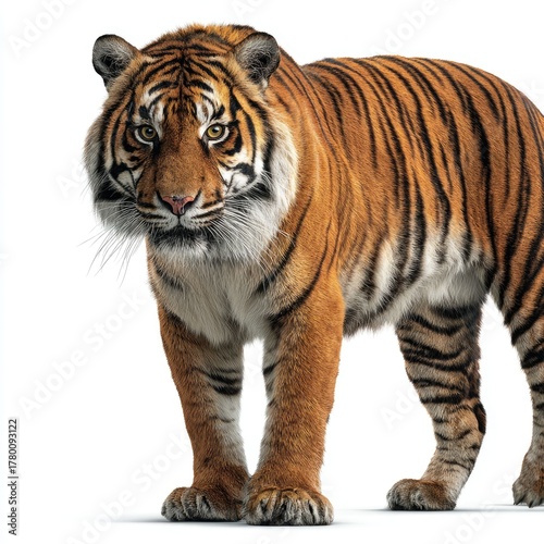 © Ganesha88, Naklejka premium Majestic tiger strolling through lush jungle gigapixel hyperrealistic image vibrant nature close-up perspective
