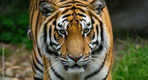 © Alexandr, Fototapeta premium Majestic tiger walking through lush greenery in its natural habitat