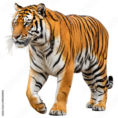 Naklejka premium Majestic tiger walking with powerful strides and striking orange fur