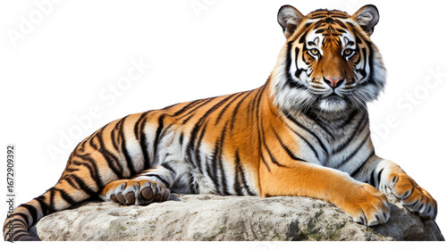 © Muhammad, Naklejka premium majestic tiger with orange fur and black stripes on white background