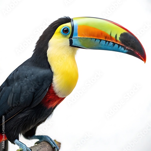 © Mostafizur, Fototapeta premium Majestic toucan with a brilliantly colored beak, perched gracefully and highlighted against a clean, minimalistic white background